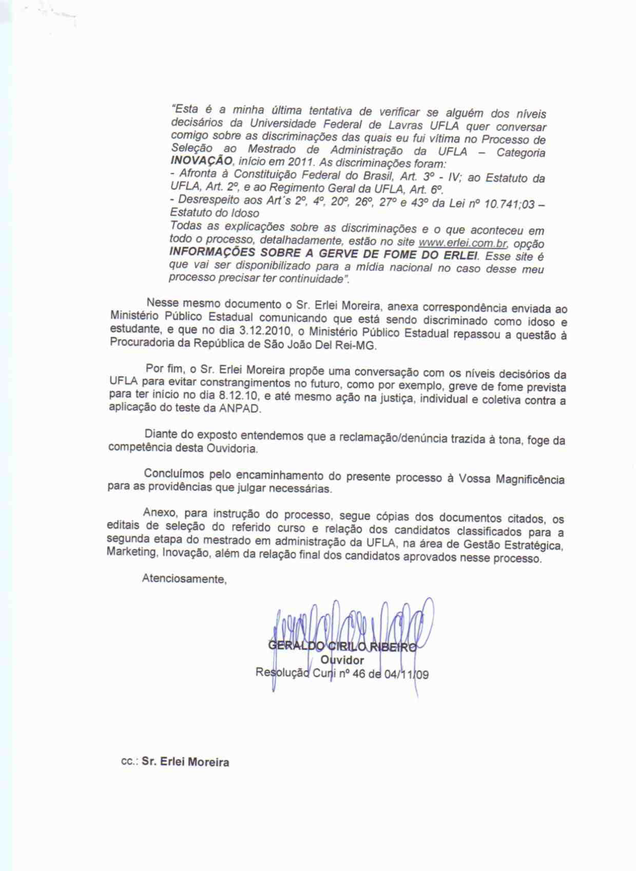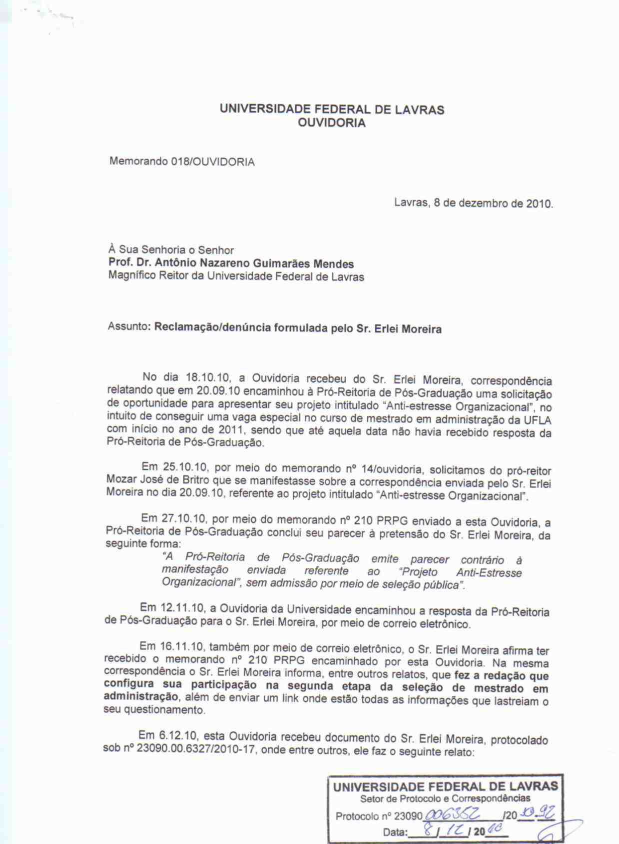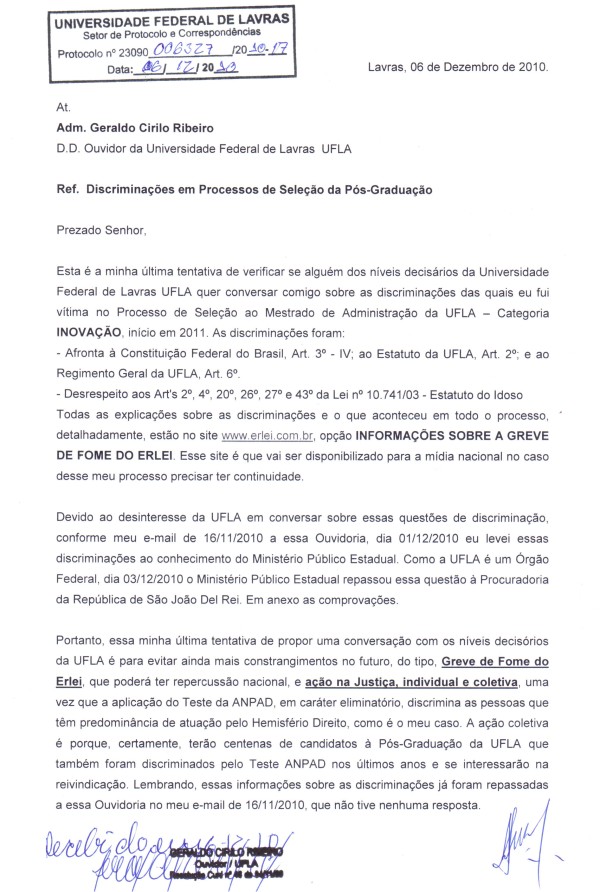 de Lavras UFLA sobre a discriminação da qual eu fui vítima no