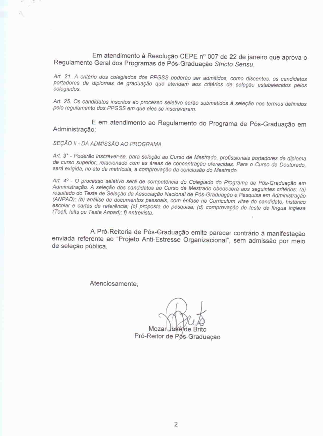 Seleção do Mestrado em Administração. Por isso estou encaminhando